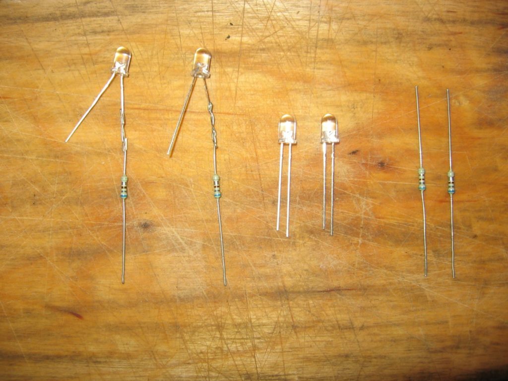Нам нужен провод длиною в 15-16 миллиметров. К нему следует припаять балластное сопротивление