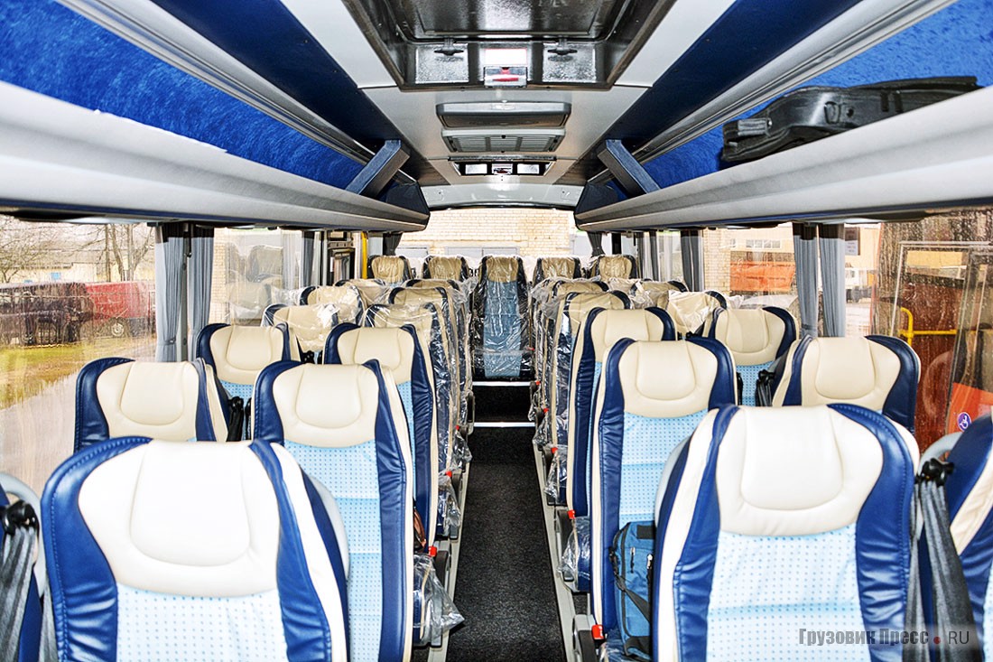 Не стоит забывать, что теперь для создания автобусов малого класса VOLAT использует более грузоподъёмное шасси IVECO Daily 70С17 на пневмоподвеске. В совокупности с увеличением габаритной длины на 740 мм общая пассажировместимость городского автобуса доведена до 44 человек, а в туристской версии при сохранении того же количества рядов сидений установлены более комфортабельные кресла турецкого производства.