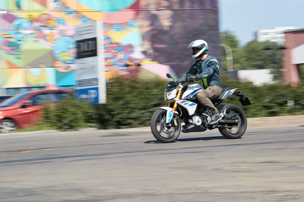 Одноцилиндровый мотор жидкостного охлаждения, объёмом в 313 куб см, обеспечивает разгон до 100 км/ч за 6,5 секунд. Максимальная скорость, которую способен развить G 310R — 155 км/ч. Наличие пассажира сказывается на разгонной динамике не лучшим образом, но это неизбежно для любого лёгкого байка.