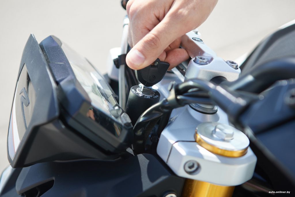 Бак имеет объем 11 литров, и при среднем расходе в 3,3 л / 100 км на одной заправке можно проехать около 300 км. Единственная деталь, к которой можно придраться в мотоцикле, — крышка бака. Она не фиксируется в открытом виде и падает под своим весом.