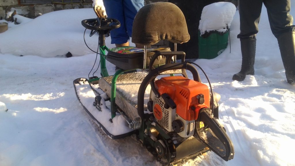 Как сделать снегокат с двигателем от бензопилы своими руками