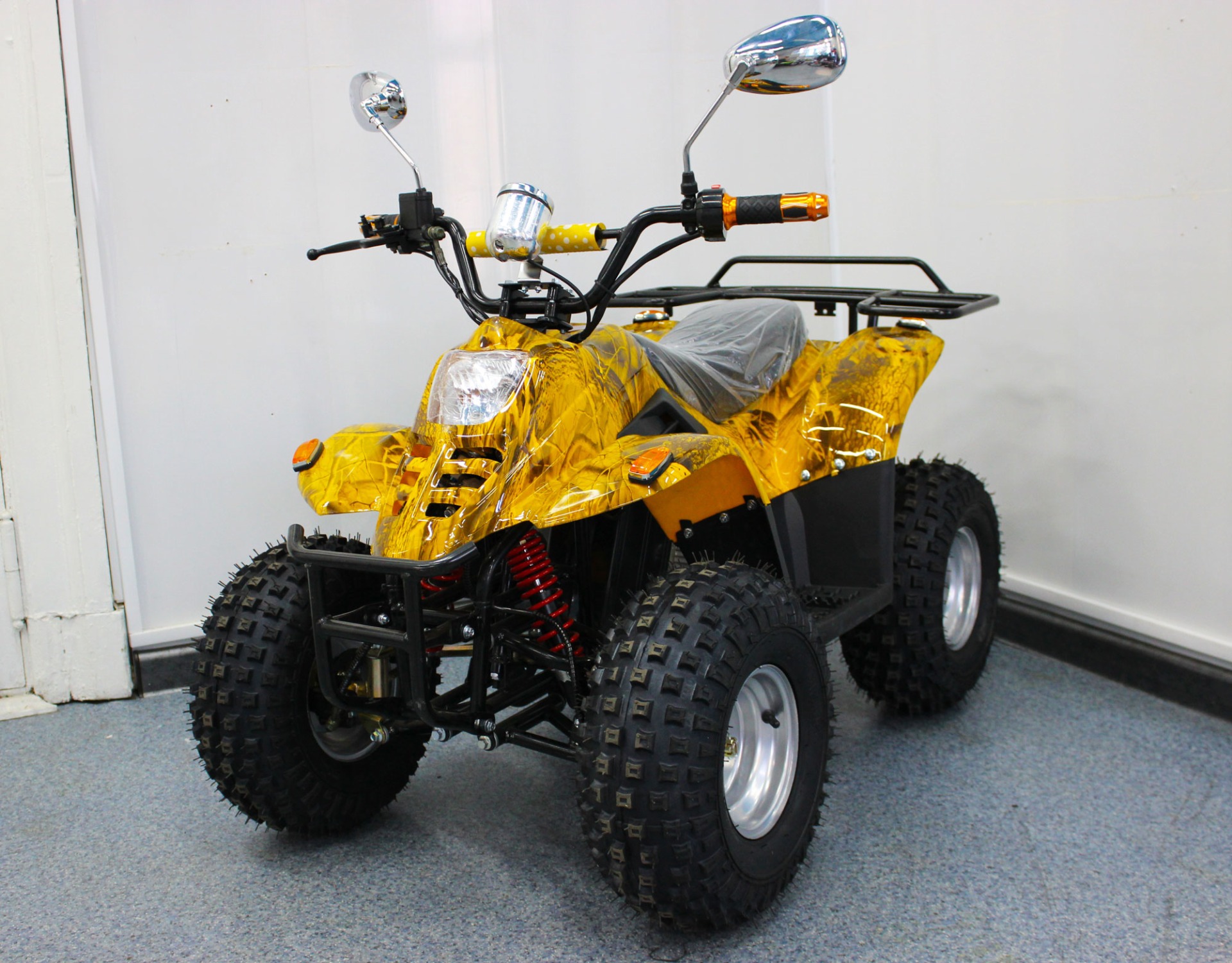 Четырехтактный квадроцикл детский бензиновый больше похож на «взрослые» аналоги. В отличие от младшего двухтактного коллеги, данный аппарат предполагает использование чистого бензина (без смешивания с маслом). В обеспечении также значатся стоп-сигналы, фары, поворотники, сигнализация, зеркала, электрический гудок и задний ход. Тормоза представлены дисковыми гидравлическими механизмами, автоматической коробкой передач (механика в детских линейках практически отсутствует).