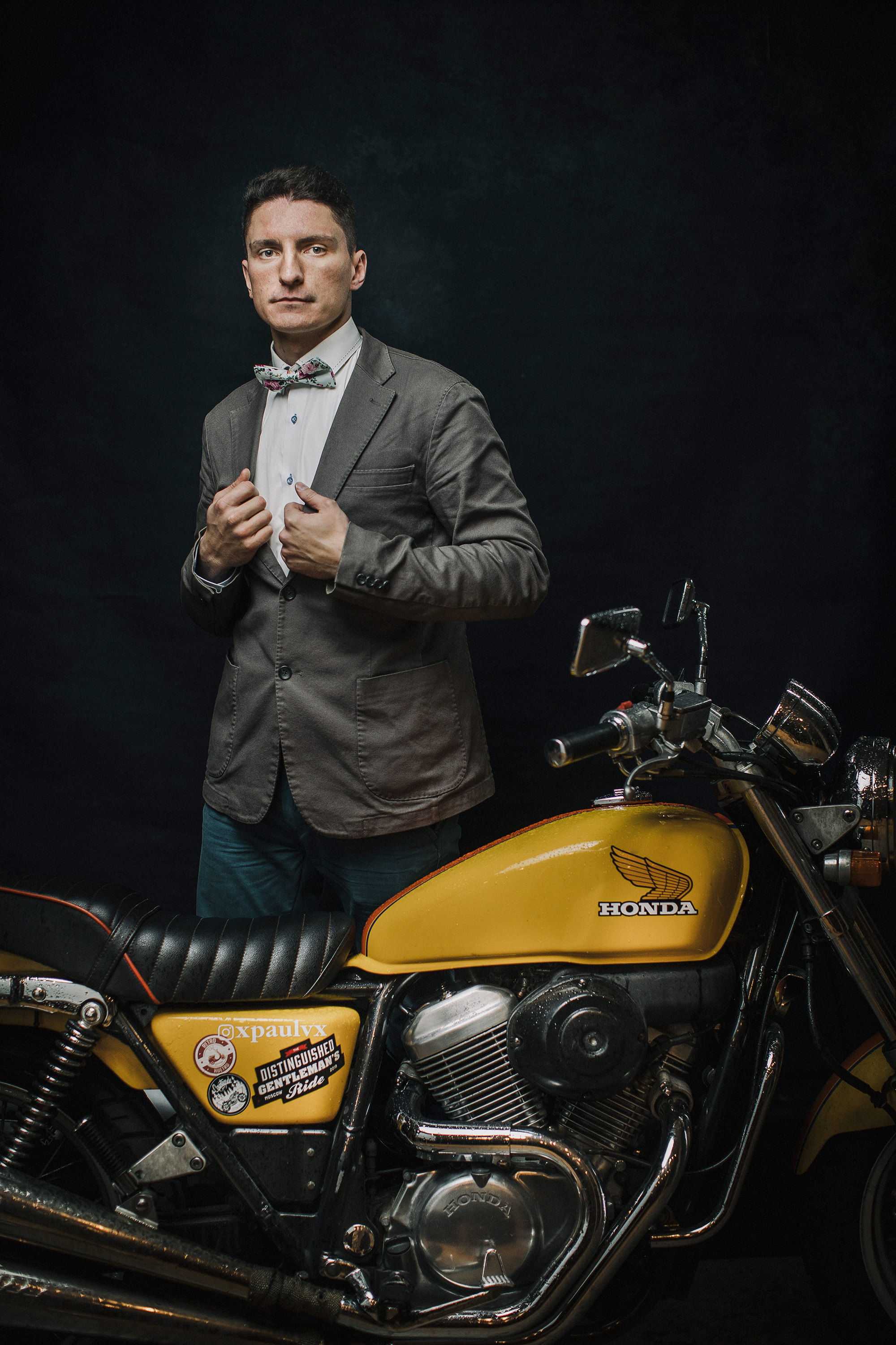 Алексей, 32 года, фотограф, организатор The Distinguished Gentleman’s Ride в Москве. Мотоцикл Triumph Thruxton R