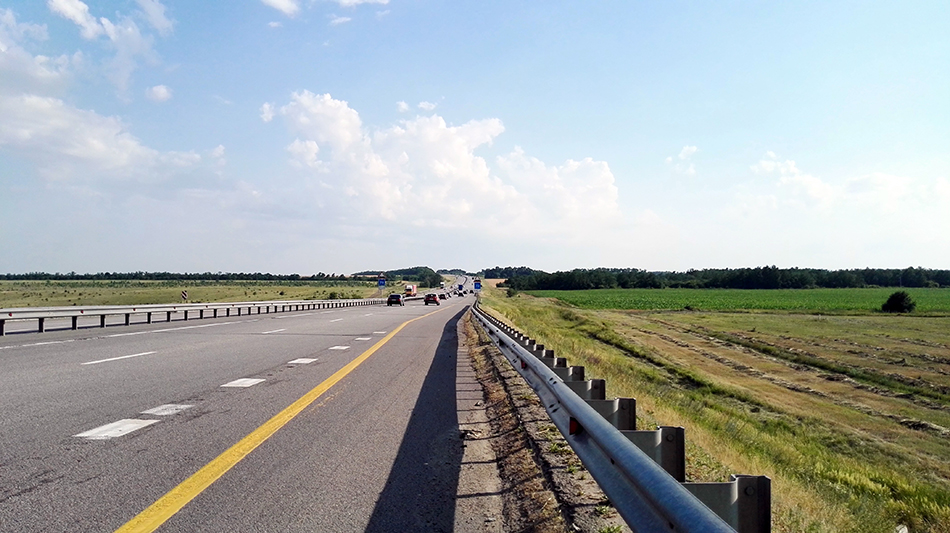 Дорога в Воронеж была трудна большим количеством двухполосок: одно попутное, одно встречное направление – приходится идти на обгоны. Постоянно встречаются фуры и грузовики: перевозят кур, кирпичи, сено, доски, автомобили – чего только не увидишь. Зато, когда я слежу за такой дорогой, время идет быстрее. В другие моменты смотрю по сторонам – Россия действительно ощущается бескрайней: поля, лихие лесополосы, извилистые магистрали.