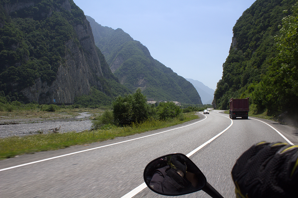 Так же постепенно меняется культура вождения. Чем ближе к Владикавказу, тем экспрессивнее водят. Смело идут на обгон на пресловутых двухполосках. Причем легковая обгоняет грузовик, грузовик обгоняет фуру, фура тоже начинает кого-то обгонять. А тут мы навстречу, благо на мотоцикле – жмемся к обочине и сигналим.