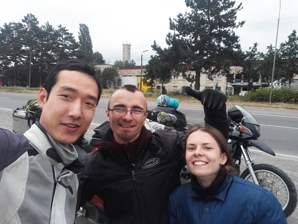 Вскоре мы встретили байкера-путешественника. Никогда не догадаетесь откуда: из Южной Кореи. В дороге уже два месяца из пяти запланированных. Оказалось, тоже едет в сторону Батуми. Теперь мы не одни. Люди, встречающие нас по пути, теперь округляют глаза, услышав «он из Кореи». «Из Беларуси» теперь ерунда. Все относительно.