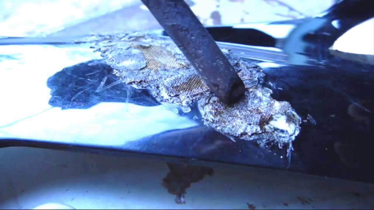 - Далее необходимо нанести грунт-активатор адгезии, на который накладывается быстросохнущий клей и заплатка из стеклоткани.