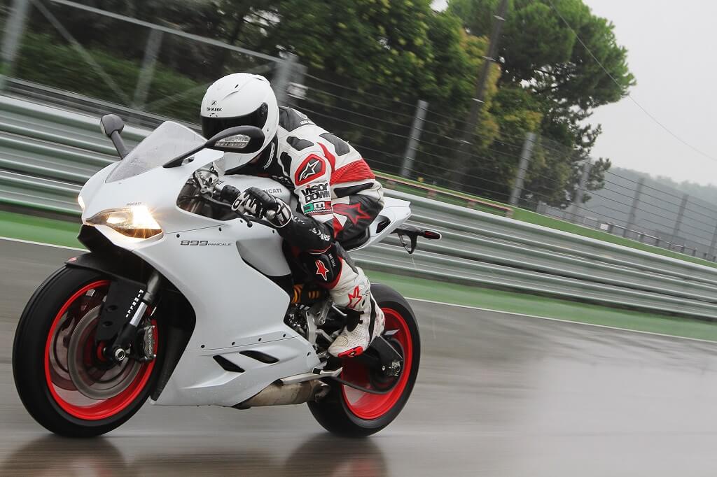 Благодаря продуманной развесовке Ducati Panigale 899 совсем не кажется тяжёлым, он послушно слушается руля (точнее, клипонов) и с лёгкостью проходит виражи “с коленкой” даже за запредельной скорости. Свою лепту в управляемость вносят и многочисленные вспомогательные электронные системы, вроде квикшифтера и трекшен-контроля. Ими оборудуются все без исключения версии Дукати 899 Панигале.