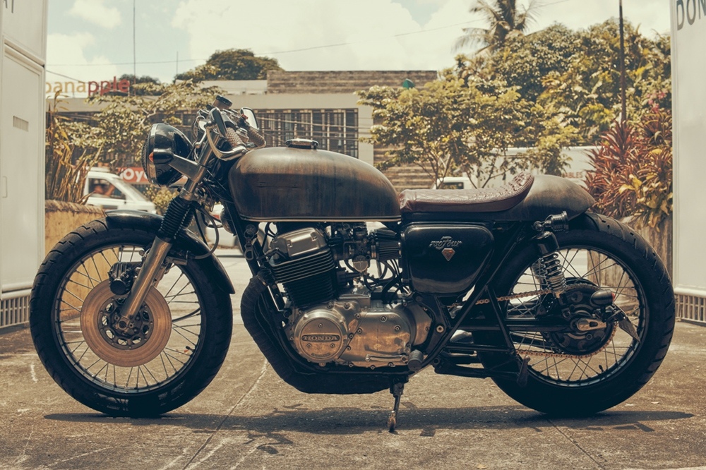 Первый проект всегда занимает особенное место в сердце каждого мастера. Филиппинец Марк Гевара работает в сфере недвижимости, проектирует скэйтборды из бамбука и углеволокна. Его компания называется «Contach Longboards». Марк дополнительно решил расширить спектр своей деятельности и занялся кастомайзингом. Он переделал Honda CB750 1974, купленный за 1000$, в кафе рейсер.