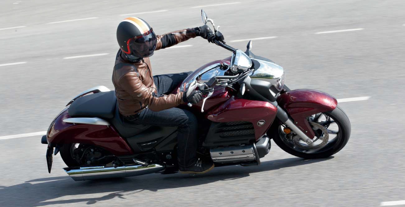 Пока привыкал к тестовому мотоциклу по пути от представительства компании Honda до гаража, несколько раз по неосторожности срывал заднее колесо F6C в пробуксовку… просто излишне оптимистично открыв «газ» со светофора! Это, кстати, коварная черта новой модели: при условии что F6C лишен практически всех электронных систем помощи (в том числе нет, конечно, и трекшн-контроля), а у 1832-кубового двигателя бездонный крутящий момент, «начинающийся» с самых «низов», на мокром асфальте (да и на сухом порой тоже…) Valkyrie превращается в такой довольно увесистый dirt-tracker, который с места трогается исключительно со 100-метровым дрифтом…