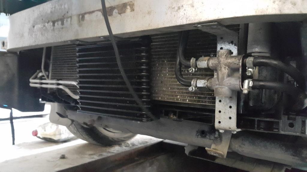 На некоторых транспортных средствах для создания необходимого температурного режима масла кроме теплообменника создается добавочный радиатор в моторном отсеке, располагается он перед конденсором климатической установки. Конденсор имеет свойство загрязняться пылью через воздуховоды, что блокирует его работу.