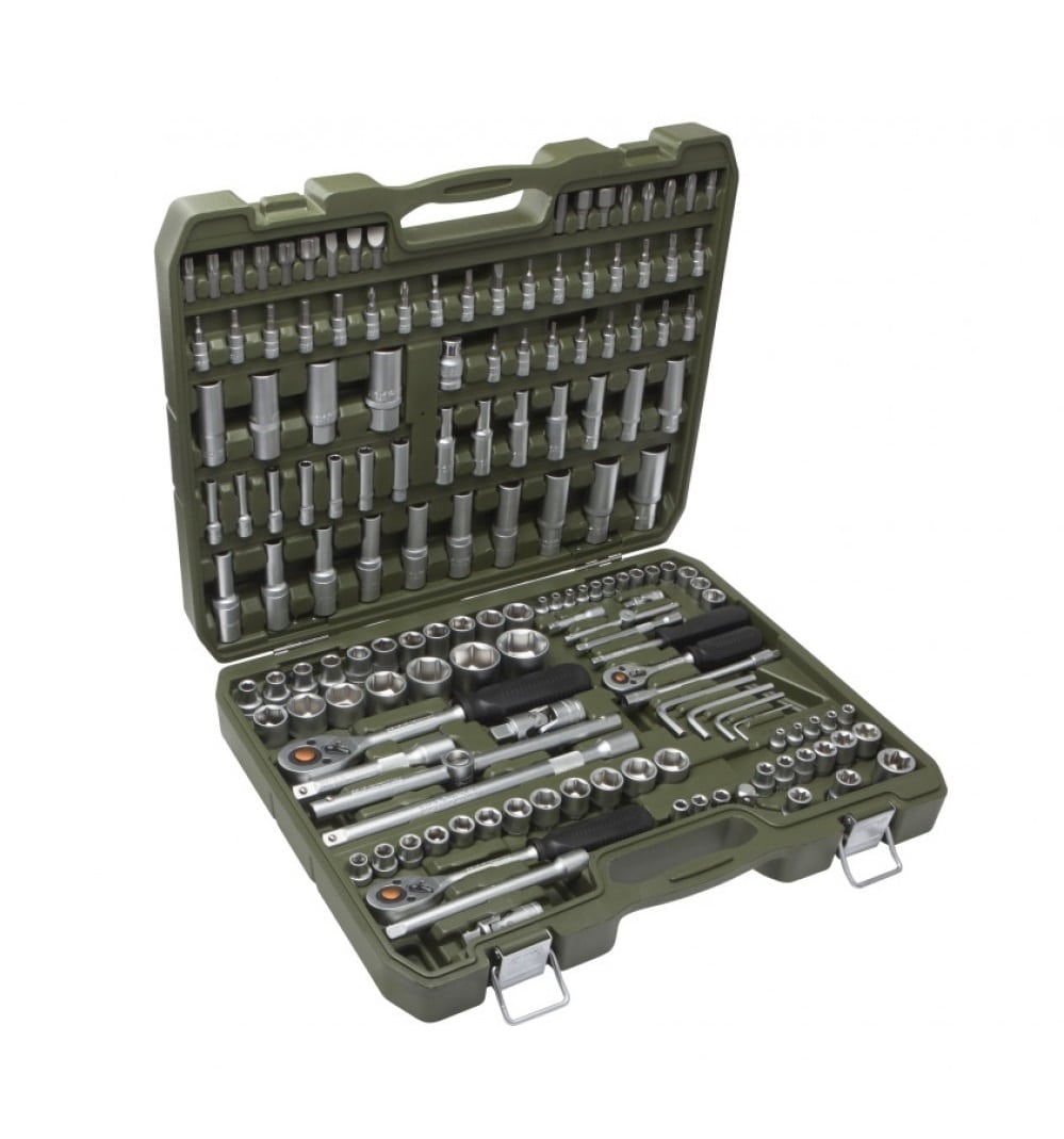 Великолепный тайваньский набор с огромным функционалом и хорошим качеством стали. От других инструментов такого класса отличается расширенной комплектацией и продуманным эргономичным кейсом из ударопрочного пластика с металлическими замками.