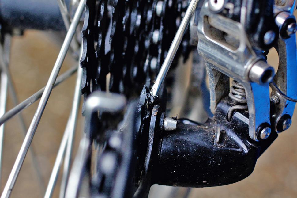 Обратите внимание на цепь, обрабатывая щеткой переключатели и протирая звенья, чтобы выбить комки грязи