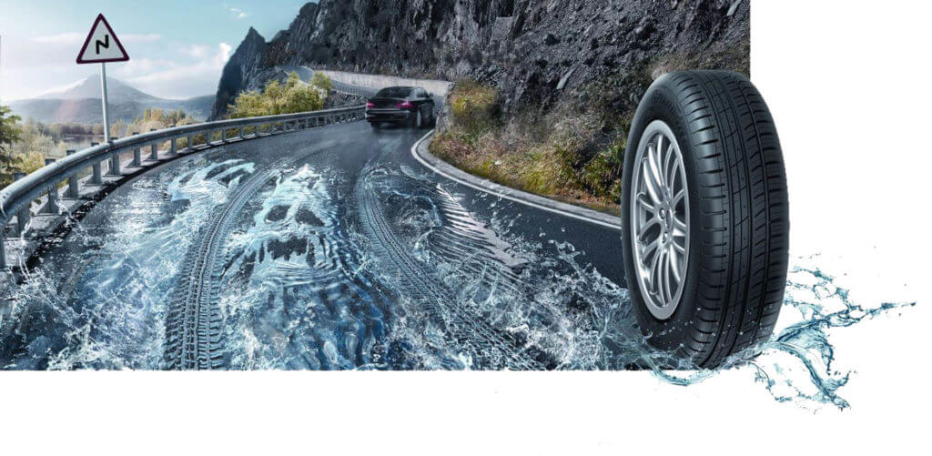 - защита от аквапланирования;полиэтилен-терефталат в составе резины для укрепления боковин;