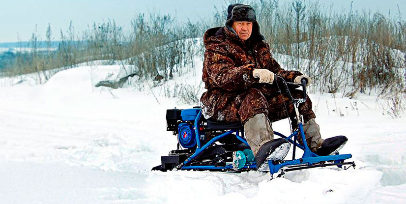 Мини-снегоход – это, пожалуй, наиболее подходящий вид транспорта для зимней рыбалки, особенно в регионах, где выпадает много снега. Достоинство его заключается еще и в том, что для его управления не нужно проходить специальное обучение: все настолько просто. К тому же, цены на мини-снегоходы не являются «кусачими», а транспорт является весьма функциональным. Если обзавестись подобным транспортным средством, то на нем можно преодолевать большие расстояния, независимо от количества выпавшего снега.
