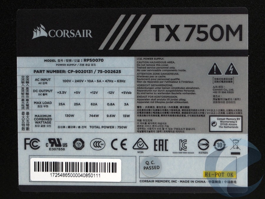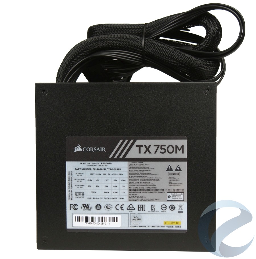 Максимальная мощность Corsair TX750M составляет 750Вт, при этом по линии 12В данный блок питания может отдавать до 744Вт.