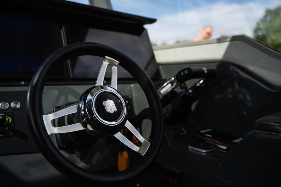 Интерьер лодки можно назвать спартанским, но это добавляет некоторую изюминку, как бы подчеркивая, что Buster Phantom Cabin — не игрушка. Кабина получила панорамное остекление, которое дает обзор в 360 градусов. По желанию владельца на судно можно установить один или два подвесных двигателя.