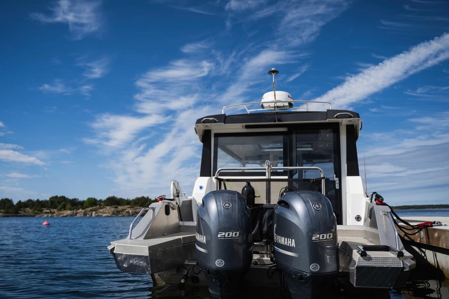В носовой части располагается каюта для двух человек и санузел, а камбуз, чтобы не занимать лишнего места внутри, вынесен наружу. Такая планировка становится очень удобной во время стоянки на якоре. Катер поставляется с подвесным мотором и стационарным двигателем на выбор, что встречается не так часто.