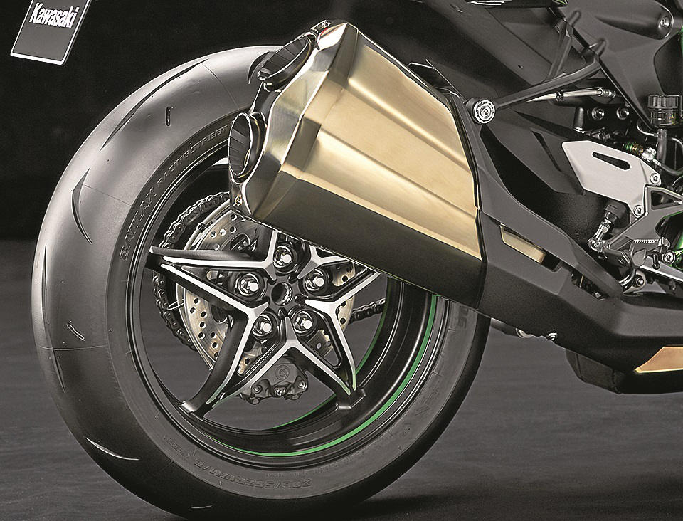 Электронно регулируемая подвеска колеса Öhlins увеличивает демпфирование при увеличении скорости и имеет различные настройки для версий H2 и H2R. кавасаки ниндзя н2