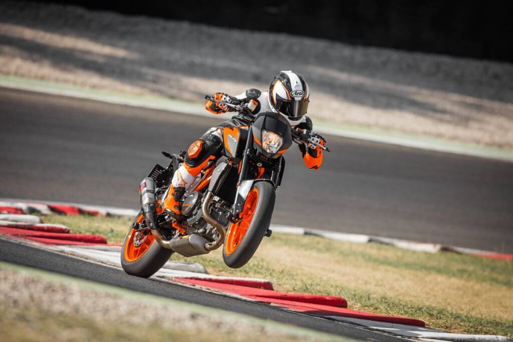 Несмотря на малый объем, отзывы KTM 390 duke 2017 года и видео указывают на его желание задрать в небо переднее колесо. Мы проверили это утверждение. Байк так и норовит сорваться в вилли, даже на 2 и 3 передачах. Благо его рама позволяет гасить такие подъемы, но даже если вы подняли переднее колесо в воздух, просто отпустите газ и мотоцикл сам примет горизонтальное положение.