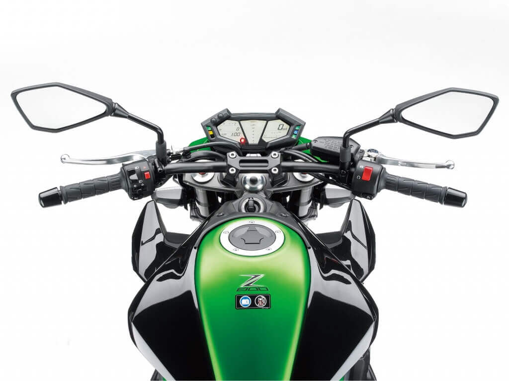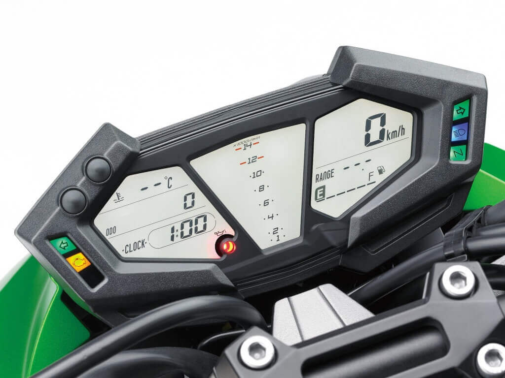 При разработке этой модели Kawasaki конструкторы предусмотрели информативную приборную панель, расположенную под обтекателем и миниатюрным ветровым стеклом. Панель состоит из спидометра и тахометра, выполненных в аналоговом стиле, с дополнительными индикаторами пониженного давления, уровня бензина, заряда аккумулятора и состояния фильтра воздуха. В зависимости от предпочтений мотоциклиста и технических характеристик Кавасаки Ниндзя 250 можно приобрести в четырех базовых цветовых исполнениях – зеленом, голубом, красном и черном.