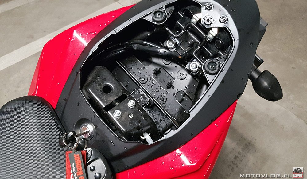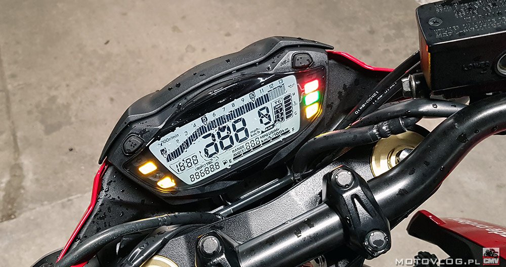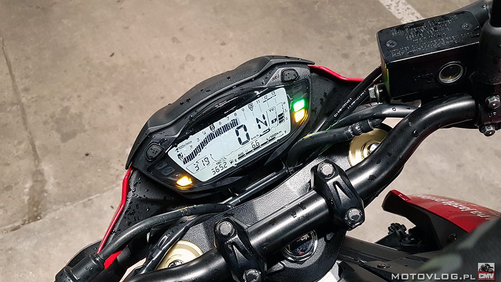 Мотоцикл “не жадный”. Емкость делает его очень гибким. Тебе не нужно думать о нехватке топлива, и сгорание вышло у меня на 6,48л / 100км. В пробках он дает советы. Он имеет довольно большое, хорошо спрятанное хранилище. Он хорошо очерчен ногами, которые не поддерживаются никакими рамочными элементами или пластиковыми изгибами. Прозрачный и чистый циферблат с четко видимым показателем скорости, большой индикатор передачи. Конечно, оборот, согласно тренду, представлен поясом. Переключатели классные и продублированные. То, что мы представляем на дисплее, можно контролировать не только кнопками под часами, но и большим пальцем на руле. И подвеска дает советы. Город как раз прав. Чем больше ямы, тем хуже, но, как правило, нечего прикреплять. К сожалению, я не знаю о поездке с пассажиром на этом мотоцикле, но похоже.