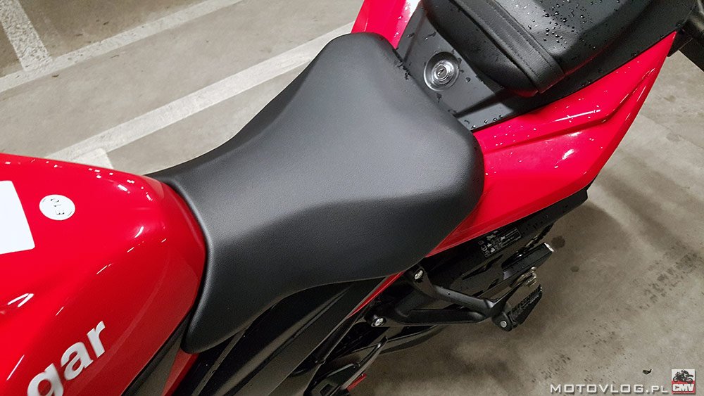 Переключатель дальнего и ближнего света включен в триггер «драгун». Обычно мы нажимаем на курок, чтобы мигать светом. Если мы хотим запустить светофор постоянно, мы нажимаем на курок вперед. И вообще, мы делаем это неосознанно, тянясь к ручке сцепления или улучшая сцепление с рукояткой. Это также мотоцикл не для более низкорослых и маленьких людей. Высокий подвесной диван и ширина мотоцикла в ногах не нацелены на таких людей. Высокий центр тяжести не всем понравится. Мот также более подвержен плохому давлению в шинах. Вы также можете почувствовать извилистый круг, по крайней мере, в тестовом искусстве вы можете это почувствовать. Классические фонари, поэтому после привычки к вездесущим светодиодам, они кажутся слабыми, и нужно менять свечи. Я также не мог правильно установить зеркала. И аэродинамика может быть лучше, но это легко компенсировать с помощью дефлектора или быстро. В базовой версии до 120 км / ч все нормально, а потом уже громко и как-то менее приятно.