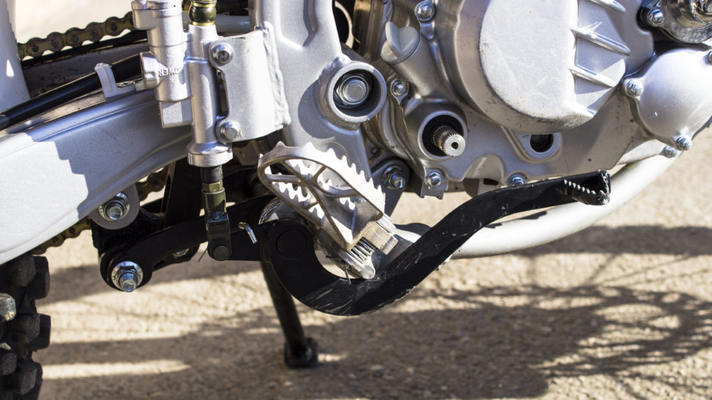 - Педаль заднего тормоза расположена слишком близко к корпусу двигателя
