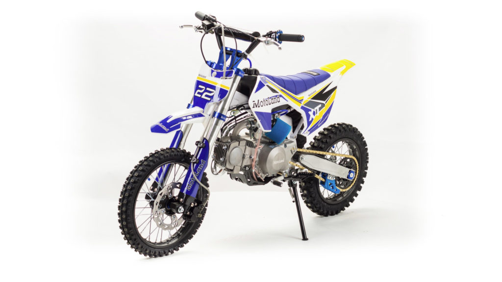 Здесь на сцену выходят питбайки с колесами 14/12. Это всё еще детские мотоциклы, все также с бензиновым двигателем, подходят для детей возрастом примерно от 10 до 15 лет. Весят они уже 70 кг. Как правило, двигатель у всех представителей в этом размере, 125 см3, мощностью 8-10 л.с. Встречаются питбайки как с электростартером, так и только с кик-стартером. Трансмиссия или полуавтомат, где нужно щелкать передачи, но не нужно использовать сцепление, или классическая, взрослая механика. Подвески на таких мотоциклах более длиноходные. Кстати, такие мотоциклы, вполне подойдут и для взрослых, но низких людей. Представители в этом размере, Motoland XT125 14/12 и Kayo Mini YX125EM 14/12. Цена у обоих чуть больше 50000 рублей.