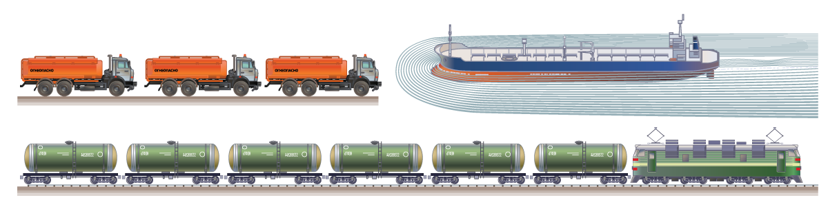 Этих недостатков лишены железнодорожный и трубопроводный виды транспорта, использование которых доступно практически в любых погодных условиях и на любые расстояния. В железнодорожных перевозках применяются специальные цистерны. Состав из таких вагонов формирует наливной маршрут. Себестоимость перевозки вагонов обратно пропорциональна их количеству. Однако железнодорожный транспорт также имеет существенные недостатки. Ключевые из них — большие капитальные вложения при строительстве и реконструкции путей, относительно высокие эксплуатационные расходы.