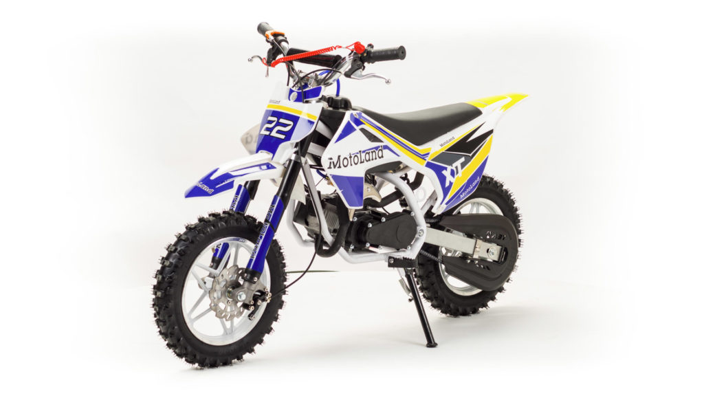 С чего же следует начать, выбирая мотоциклы для юного спортсмена? Все зависит от возраста вашего ребенка. На самой нижней ступени располагается мотоцикл Motoland XT50 и MOTAX Миникросс. Это детские мотоциклы на бензине, по-другому миникросс или питбайк. Мотоциклы самые маленький по размеру. Размер переднего и заднего колеса по 10”. Длина всего 130 см. Высота по седлу 58 см. Вес порядка 25 кг. Рассчитаны для детей в возрасте от 5 до 10 лет. Оснащены двухтактным двигателем объемом 49 см3 и мощностью 3,5 л.с. Стартер ручной