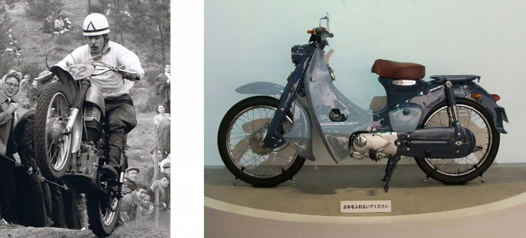 - Горизонтально расположенный двигатель, разработанный на основе концепции Honda Cub, с горизонтальным расположением цилиндра.