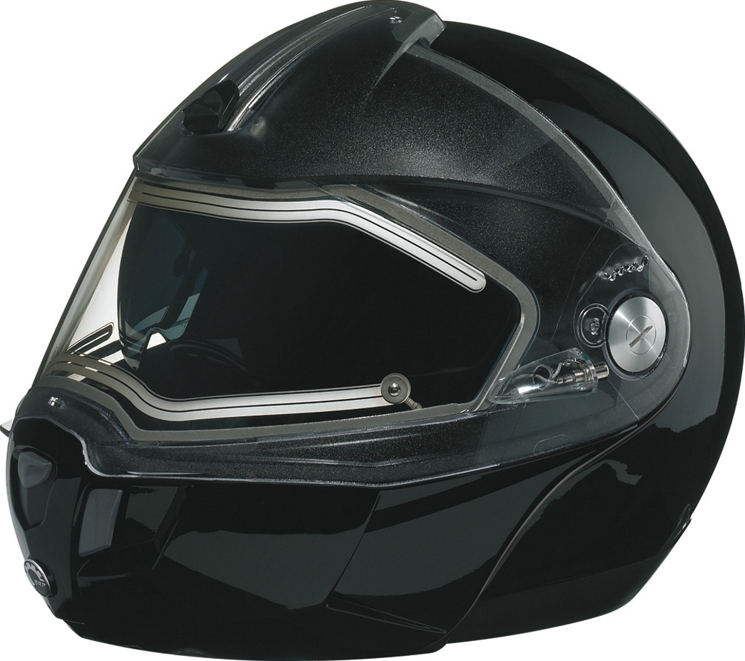 Модуляр, он же flip-up (флип-ап) для снегоходчика удобен тем, что во время отдыха или вынужденной остановки не требуется снимать его с головы. Достаточно поднять переднюю часть, и можно вволю дышать морозным воздухом и любоваться окрестностями. Если вы носите очки, модуляр для вас будет предпочтительнее, чем интеграл или кроссовый шлем. Флип-ап можно надеть в открытом виде. Двойное стекло визора обеспечивает отличную видимость без подогрева при температуре до -10 °C. Если включить подогрев, видимость не ухудшится при морозе до -40 °C. Принято считать, что модуляр тяжелее кросса и интеграла. Но сегодня из этого правила есть много исключений. Максимальный комфорт и защита – это шлем флип-ап.