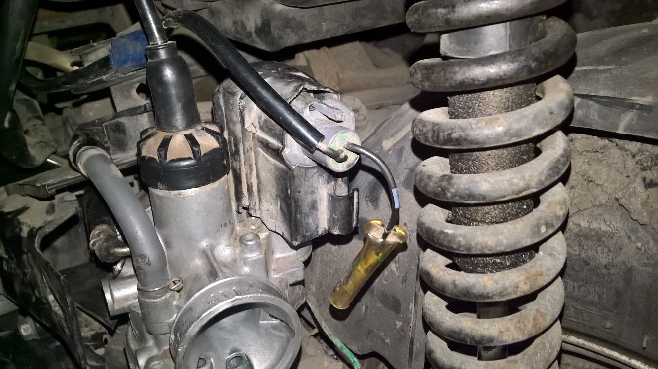 Начнем с причины , которая подтолкнула меня на замену данной запчасти . У меня был плохой запуск на холодную ( как оказалось дело было не совсем в ЭК ) , а в ЦПГ , но речь сейчас не о ней . Не хитрым методом , а именно прозвонкой ЭК ( будем дальше так его звать ) было определенно , что его коротит . По факту он считался рабочим , но на деле всего лишь элемент который не функционирует так как положено . Было предпринято решение , которое по моему мнению исправит все мои проблемы со скутером ( смешно ) , а именно покупка нового ЭК ! Ах да , возможно кто то не знает зачем вовсе этот ЭК . Объясняю . ЭК обеспечивает запуск двигателя на холодную . Отвечу на вопрос который может возникнуть у вас , а именно можно ли ездить без ЭК . Отвечаю : Да , можно , при условии , что вы закроете отверстие на карбюраторе где стоял ЭК . Но при этом у вас значительно вырастет расход топлива ( т.к. есть канал , который не запирается иглой ЭК и туда поступает постоянно бензин на холодный запуск ) . Надеюсь с этим мы разобрались . Продолжим . После покупки , я радостный полетел на гараж побыстрее чинить свой скутер . Столкнулся с проблемой, с которой я вообще не ожидал , что столкнусь . Я не знал к чему подсоединять ЭК О.о Как оказалось , бывший владелец оказался умным япончиком . По неизвестным мне причинам он решил вывести один провод ( зеленый ) отдельно на массу . Ну а мой новый ЭК был расщитан на соединение фишка-конектор . После недолгих раздумий было принято решение подогнать новый ЭК под вариант умного япончика . Забрав новый и старый ЭК домой , я решил разобрать их и с оригинального эк установить на китайский все запчасти которые по минимуму износились . Таким образом была замена игла . По словам одного из мастеров оригинальная игла лучше тем , что она острее чем китайская , и как оказалось он оказался прав . По сути можно было бы остановиться на замене иглы и ставить его уже на скутер . Но я решил , что чем больше рабочих оригинальных деталей , тем лучше Был заменен нагревательный элемент , а так же были заменены пружины . Ну как заменены … одну заменил , а вторую установил , т.к. китайцы посчитали , что эк и с одной пружиной хорошо будет О.о В итоге , из китайского осталось только корпус и проводка которая была переделаная . Собрав этот эксперимент в одно целое , переделав проводку ( спасибо моему другу Андрюхе который помог мне перепаять все ) , мы решили проверить ЭК на работоспособность . Если кто то не знает как проверять ЭК . Подсоедините провода к аккумулятору не соблюдая полярности , тоже самое касается и установки на скутер , подсоединив, усаживайтесь поудобней и наблюдайте , желательно взять линейку . Игла будет медленно выдвигаться — это нормально . Если кто то испугается , что ЭК греется , то объясняю : Так и должно быть . Таким вот образом я собрал ЭК который на 95% живучей чем китайский Но это не точно )