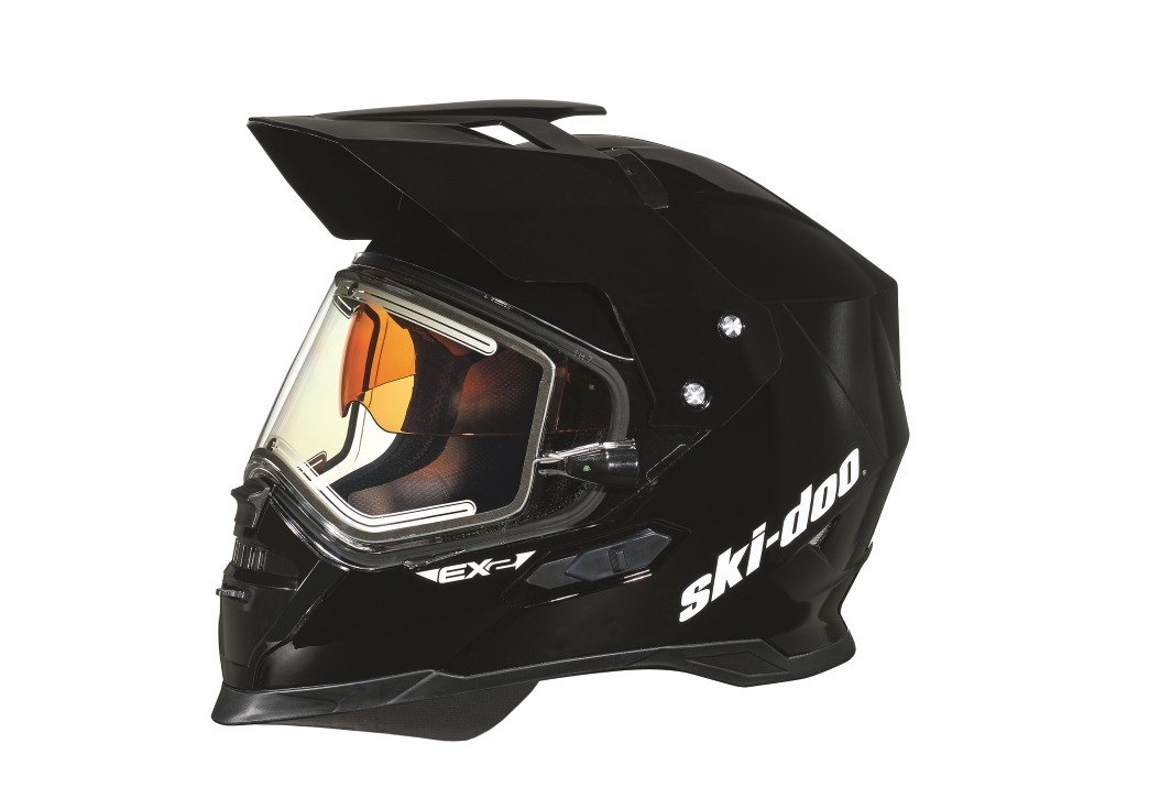 - Ski-Doo EX-2 Enduro Helmet – модль гибридной конструкции с защитой от солнца и снега. Подходит для езды по трассе и на горном бездорожье. Скорлупа на 80% состоит из поликарбоната