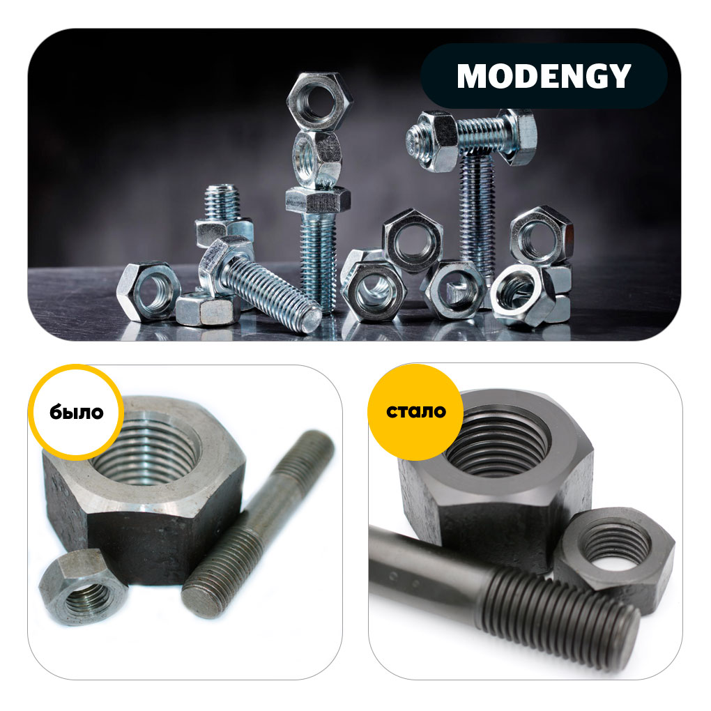 Рис. 3. Стальной нержавеющий крепеж с покрытием MODENGY и без него