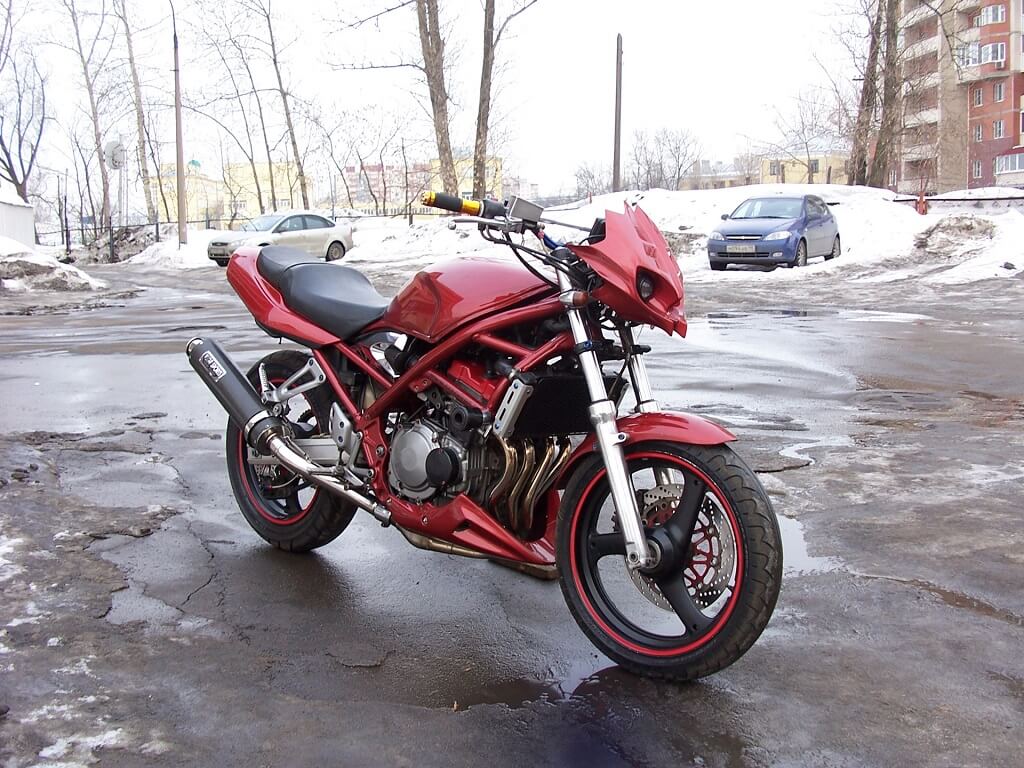 Ориентированность байка на своих потребителей подтверждается и в устройстве подвески. Передняя явно рассчитана на японские дороги, так как очень мягкая. Поэтому следует при покупке проверить и, если необходимо, заменить амортизаторную жидкость на более густую и вязкую. Желательно поставить и дополнительные тюнинговые пружины. В задней подвеске есть возможность регулирования сжатия пружин и поэтому проблем у владельцев здесь не будет.