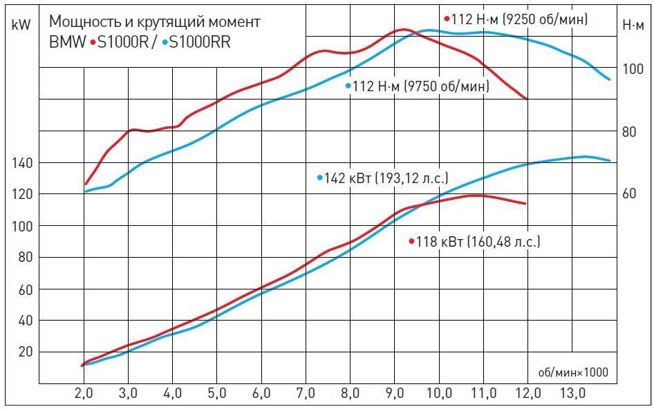 Итак, BMW S1000R предоставляет райдеру возможность выбора между четырьмя режимами работы двигателя: Rain и Road в стандартной комплектации, плюс Dynamic и Dynamic Pro после установки опционного пакета. Если быть точнее, то режимами работы мотора в прямом смысле этого слова указанные программы не являются — вернее, не только ими. Каждый режим «завязан» на работу всех остальных электронных систем помощи, и активация, например, самого «слабого» Rain скажется не только на снижении максимальной мощности двигателя (со 160 до 136 л. с.), сглаживании характера отдачи крутящего момента и отклика на движение ручки «газа», но и автоматически активирует для Race ABS и трекшн-контроля DTC самые «строгие» настройки, а также выставит адаптивную подвеску DDC в Soft!