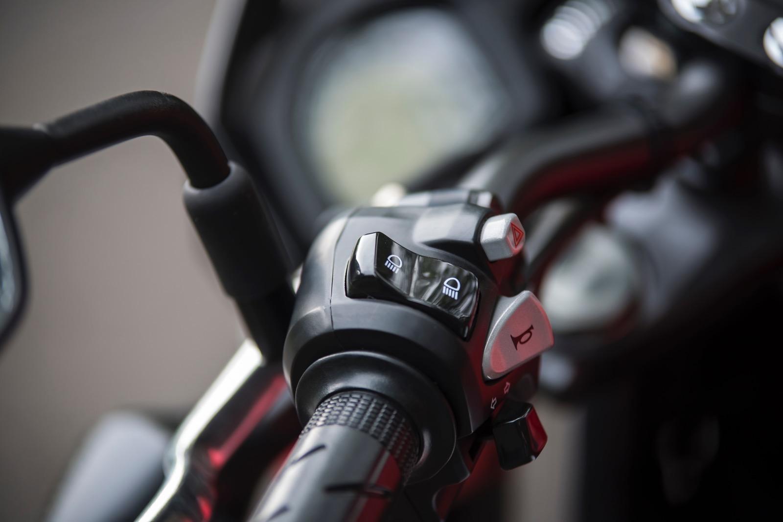 А переработанные пульты с распустившимися «лепестками» крупных эргономичных клавиш и новая цифровая приборная панель, формой напоминающая смартфон, окончательно сбивают с толку – кажется, что перед тобой совершенно новая модель! На это намекают и яркий белый блинкер, и пиктограмма трекшн-контроля, появившиеся на мотоцикле вместе с индикатором выбранной передачи.