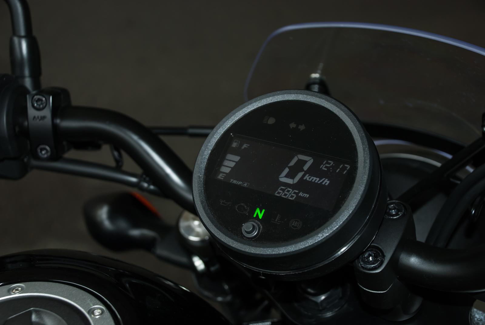 Мы не сможет знать слишком много информации от самих часов. 10-сантиметровый диск, оснащенный ЖК-дисплеем, даст нам только информацию о скорости, состоянии топлива, температуре охлаждающей жидкости и пробеге. Мы не найдем там ни расхода топлива (как мгновенного, так и долгосрочного), ни тахометра. И тут возникает самая большая «проблема» этого мотоцикла. 45-сильный двигатель скорее удовлетворит только начинающих мотоциклистов, а те, кто более опытен, через неделю начнут жаловаться, что им не хватает мощности. В свою очередь, для новичков в теме двухколесных транспортных средств было бы намного легче выбрать правильную передачу, имея тахометр или, по крайней мере, индикатор, указывающий правильное положение коробки передач. Конечно, со временем все учатся водить «по слуху», однако приятное пирокотание Мятежника не всегда легко интерпретировать.