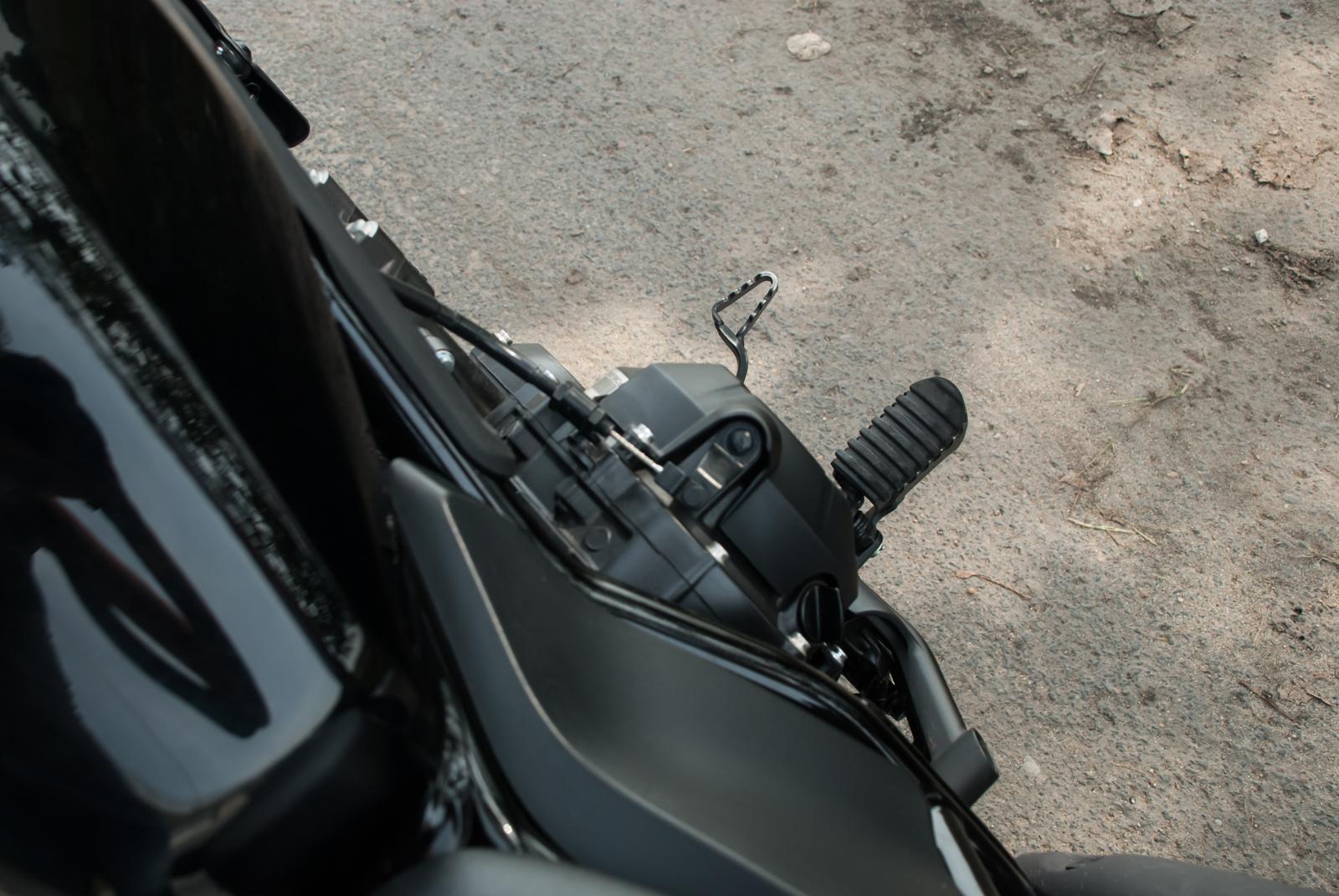 Правда, после 90-100 км/ч мотоцикл начинает мелко вибрировать, давая понять, что его крейсерская скорость лежит где-то в этих пределах. Пятиступенчатая КПП работает с традиционной для мотоциклов Honda чёткостью и вызывает только положительные эмоции. А вот звук выхлопа, скажем так, напоминает скутер, но глупо было бы требовать сочного басовитого рыка от 250-кубового мотора, тем более рядной компоновки.
