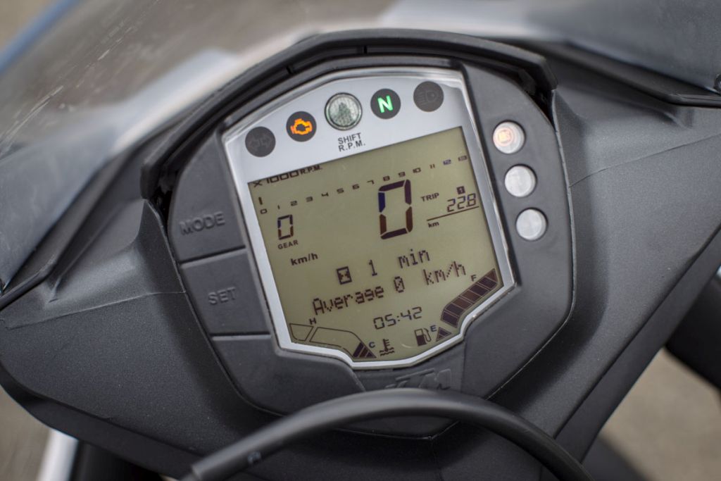 Эргономика мотоцикла тоже на высоте — клипоны, расположенные над верхней траверсой, вынуждают водителя наклоняться вперёд, но дискомфорта эта типичная для спортбайков посадка не вызывает, к тому же управляется мотоцикл действительно на удивление легко. Лаконичная приборная панель отлично читается с водительского места, а все кнопки на пультах привычны, и расположены именно там, где их ожидаешь увидеть.