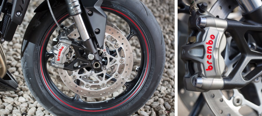 Для тех, кто «прогулял» наш тест в апреле 2013 года, напомню основные составляющие классического английского нейкеда с ярко выраженным спортивным акцентом и великолепными манерами. Итак, берем дорогие и качественные компоненты шасси (Kаyaba, Nissin, Brembo), разбавляем их первоклассными шинами Pirelli Diablo Rosso, немного по вкусу армированных тормозных шлангов…
