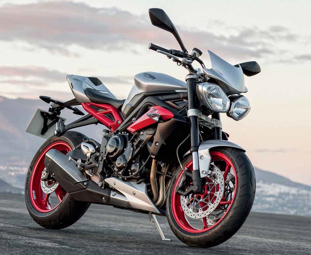 Мотоцикл Triumph Street Triple – легкий, энергичный и дерзкий байк с обновленным дизайном. Он отличается мощным силовым агрегатом, позволяющим ускоряться на любых оборотах благодаря ровной подаче крутящего момента. Серия Street Triple всегда в боeвой готовности для спортивных заездов или комфортных поездок по мегаполису, чему способствуют уверенный силуэт и харизма этих мотоциклов.