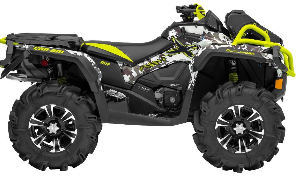 Can-Am Outlander 1000 X mr 2014 считается многими пользователями настоящим королем бездорожья. Внешний вид придает ему еще большую уверенность и величие. Шины обладают размером в 30 дюймов, а грунтозацепы высотой почти в 4 сантиметра. Данная модель легко преодолеет любые трудности, в том числе грязевые ванны и болота.